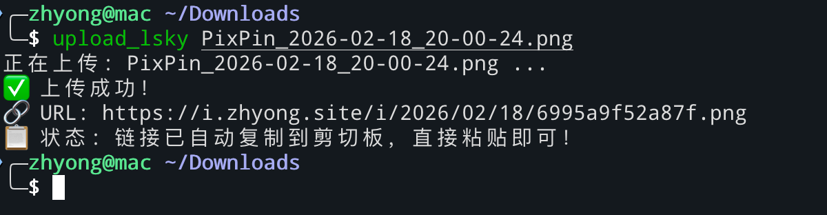 通过这个不到 80 行的 Python 脚本,我们成功地将一个繁琐的图床交互过程简化为了一行命令。这不仅节省了时间,更保持了工作心流的连贯性。相比使用Molunerfinn/PicGo等本地图片上传软件,也更加方便快捷。