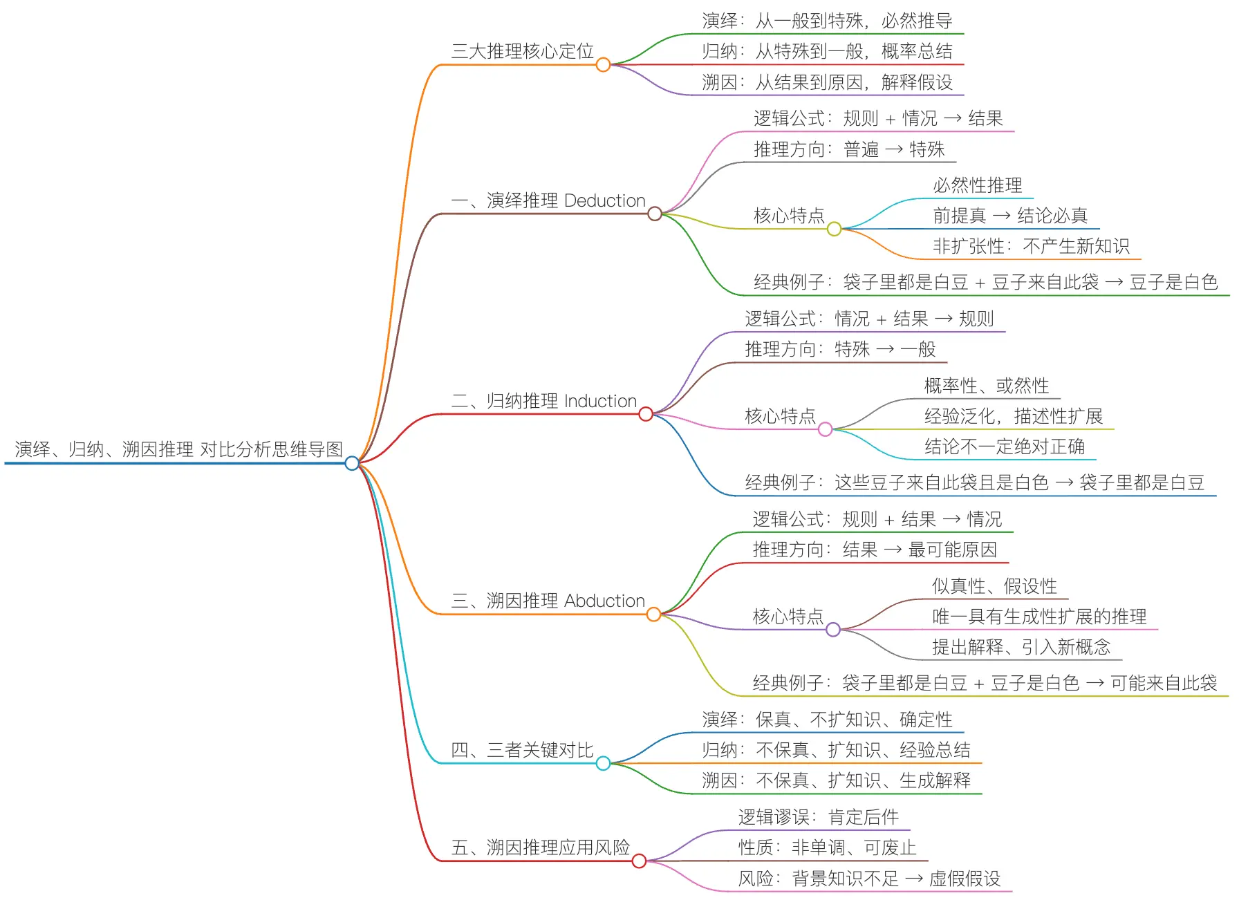 | 可靠性 | 高(前提真,结论必真)。 | 中(取决于样本与概率)。 | 暂时的/缓解无知(具有启发性)。 |