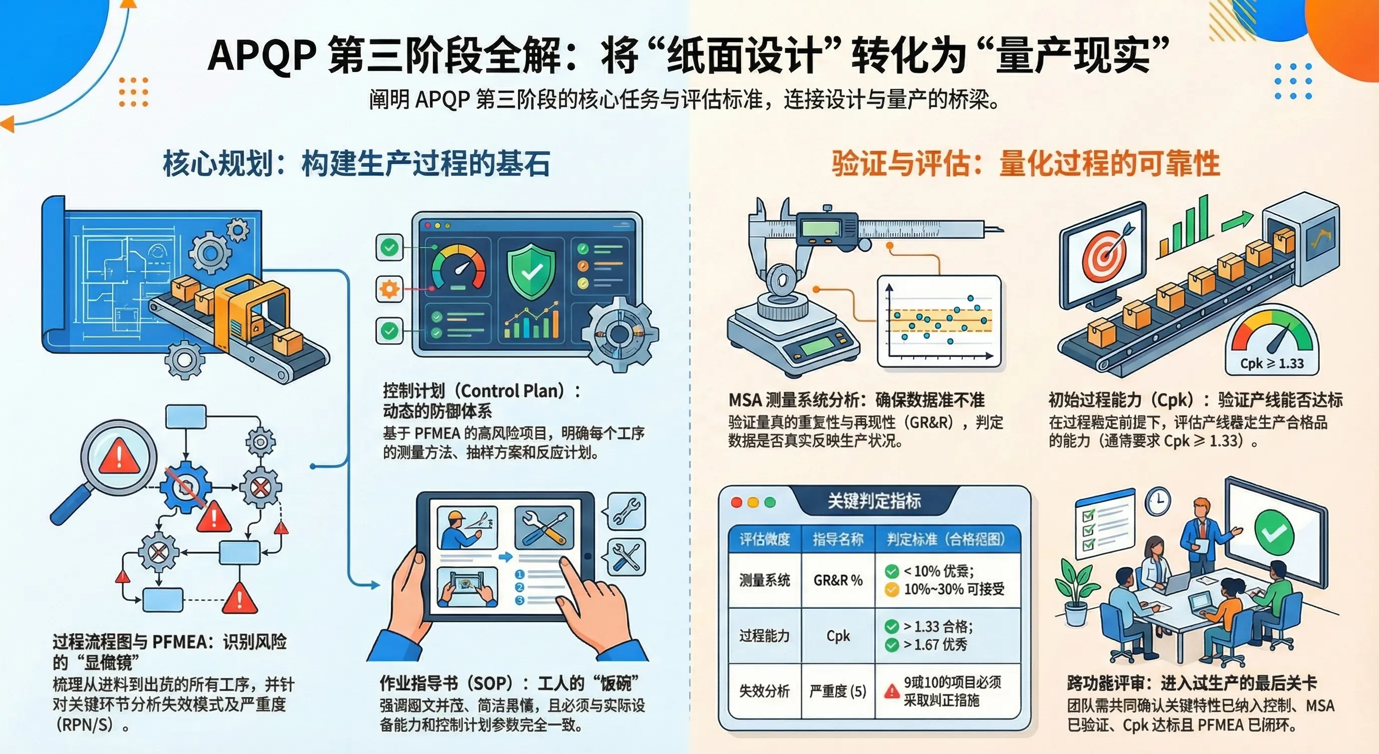 第三阶段是APQP五个阶段中”工程量最大、跨部门协作最多、也是最考验团队执行力”的阶段。